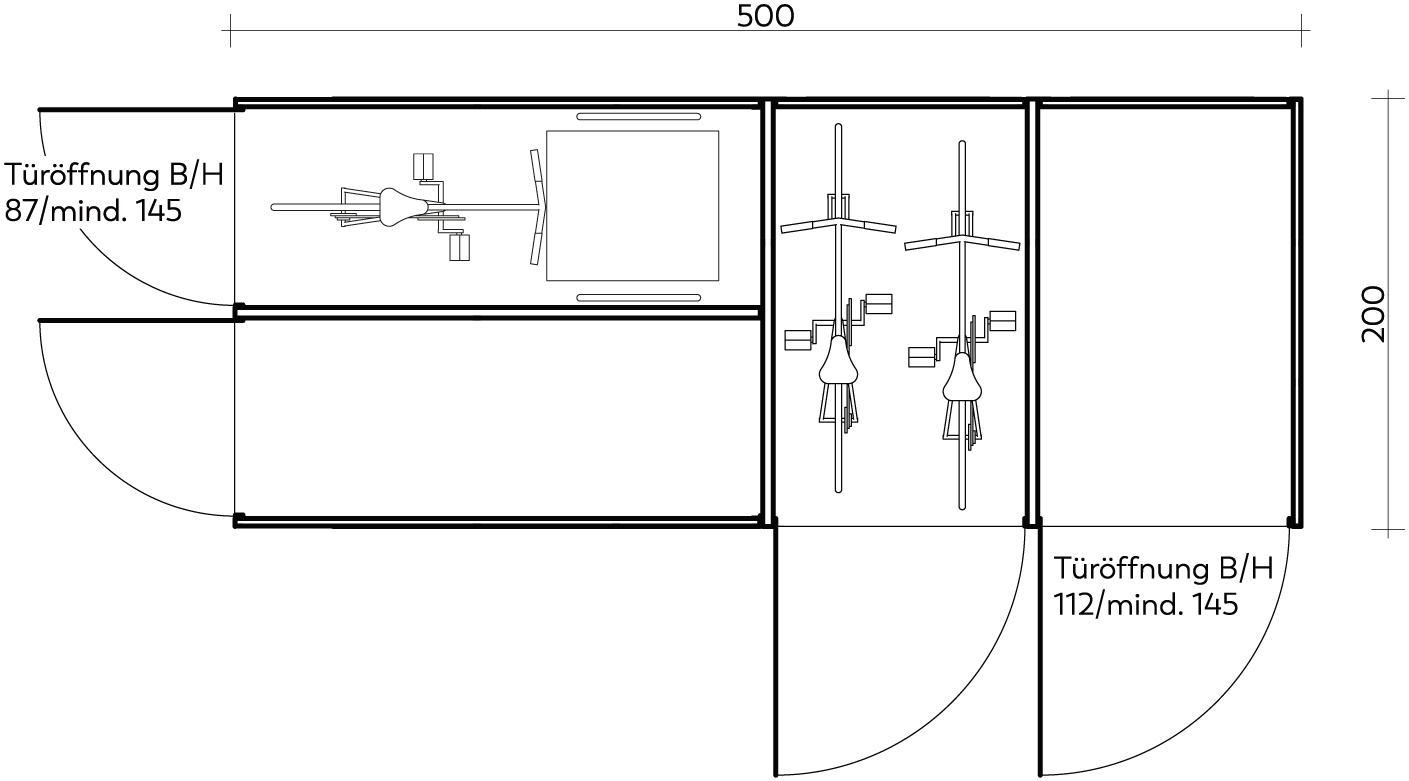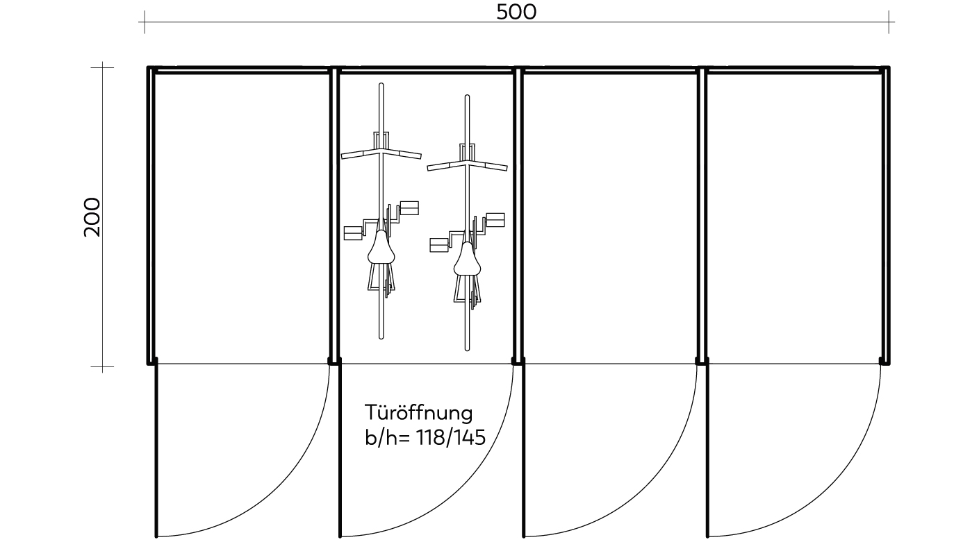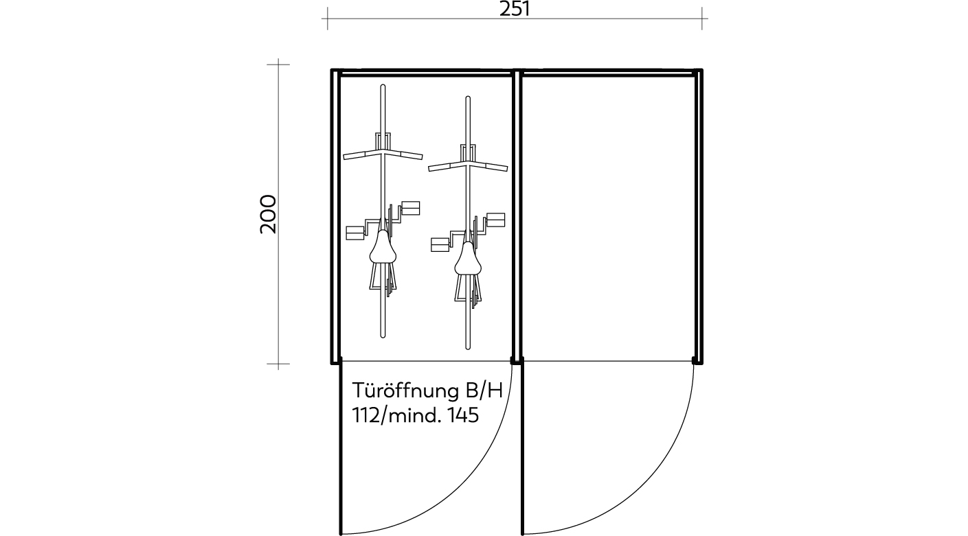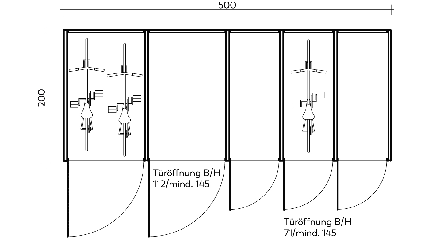 Die lichte Öffnungshöhe der VELODEPO-Türen liegt bei komfortablen 1,45 m. Damit können auch Fahrräder mit Kindersitzen oder E-Bikes mit hohen Lenkern und Monitoren bequem eingeparkt werden.