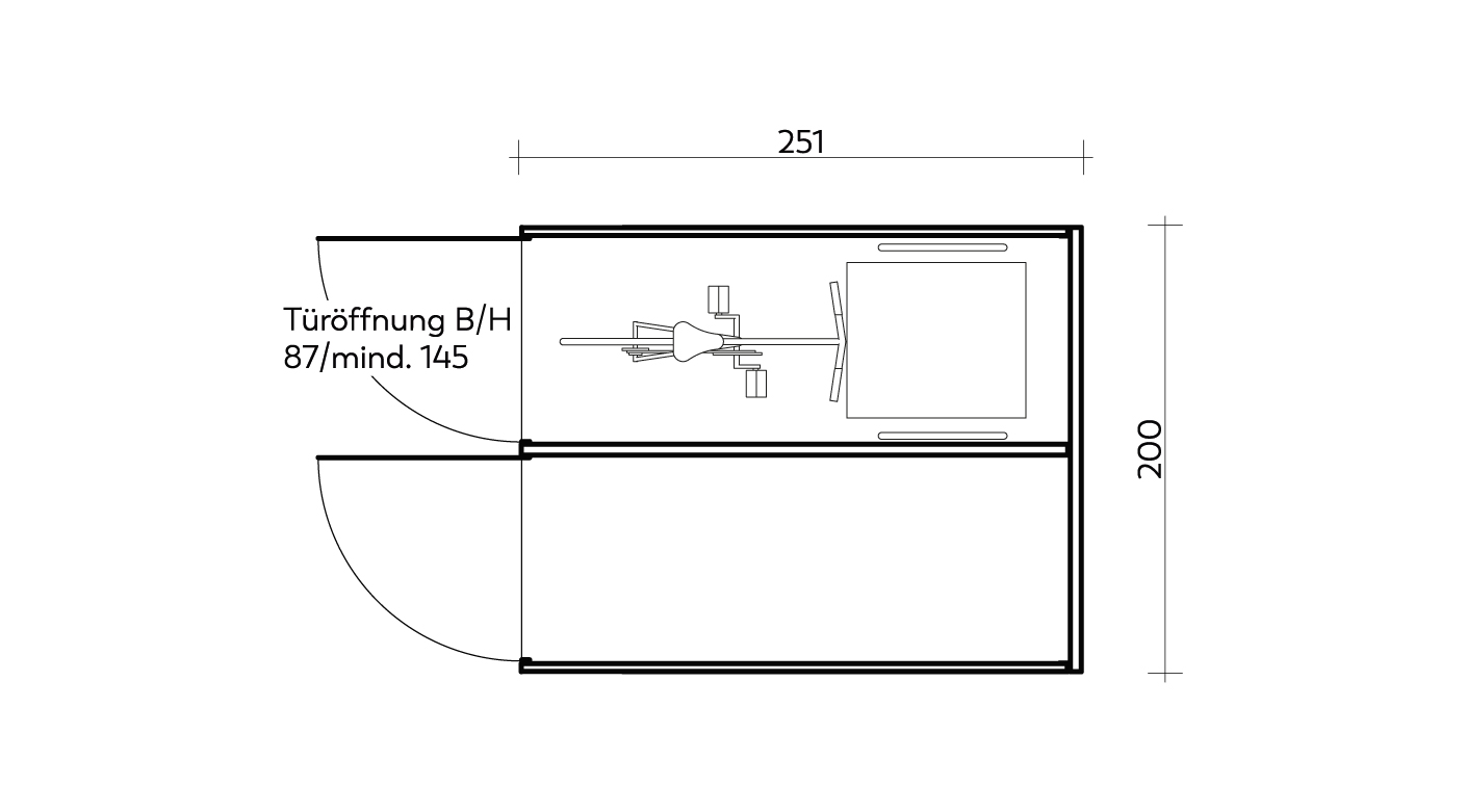 Die Aufstellfläche sollte den Maßen der Garage entsprechen und zusätzlich einen Rangierbereich von zwei Metern über die gesamte Breite der Garage auf Seiten der Türen vorsehen.